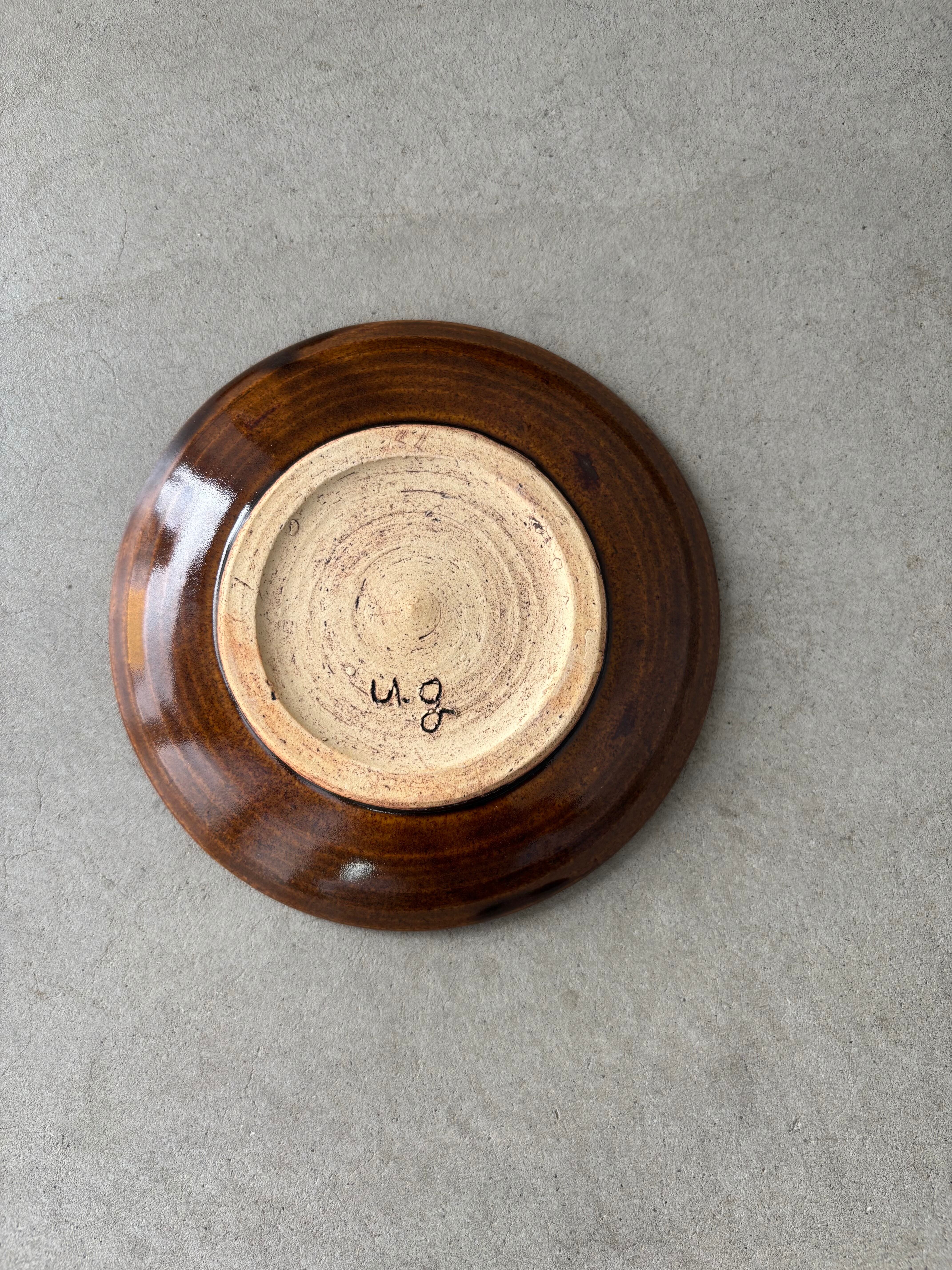 焼き色の濃淡が、乾いた大地や草のかげ、午後の陽ざしを思わせる。